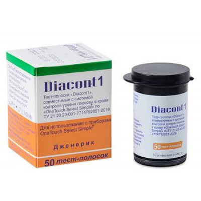 Тест-полоски DIACONT1 предназначены для использования с глюкометрами OneTouch Select® и OneTouch Select Simple®. Тест-полоски DIACONT1 являются аналогами оригинальных полосок OneTouch Select®. OneTouch® является зарегистрированной торговой маркой корпорации Johnson&Johnson. Они могут использоваться людьми с сахарным диабетом для самоконтроля, а также медработниками для обследования пациентов в лечебно-профилактических учреждениях с целью контроля эффективности лечения сахарного диабета.