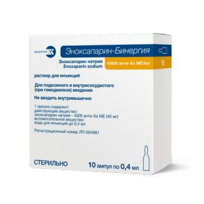 ЭНОКСАПАРИН-БИНЕРГИЯ 10000 АНТИ-ХА МЕ/МЛ. 0,4МЛ. №10 Р-Р Д/ИН. АМП. /БИНЕРГИЯ/