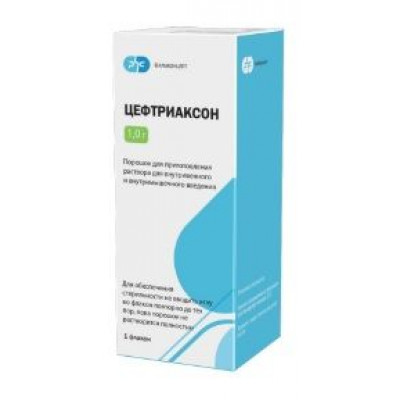 Порошок для приготовления раствора для внутривенного и внутримышечного введения 1 г. По 1,0 г цефтриаксона во флаконы стеклянные из бесцветного стек ла, герметично укупоренные пробками резиновыми или пробками резиновыми бромбутиловыми с последующей обкаткой колпачками алюминиевыми. На каждый флакон стеклянный наклеивают этикетку из самоклеящегося материала. Для стационаров: По 50 флаконов вместе с равным количеством инструкций по медицинскому применению помещают в коробку из картона коробочного. На коробку наклеивают этикетку из бумаги этикеточной или писчей, или этикетку из самоклеящегося материала. Коробки помещают в ящик из картона гофрированного. На ящик наклеивают этикетку из бумаги этикеточной или писчей, или этикетку из самоклеящегося материала.