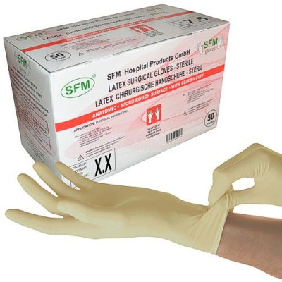 СФМ ПЕРЧАТКИ ХИРУРГ. СТЕР. ЛАТ. Н/ОПУДР. ТЕКСТ. АНАТОМ. Р.7,5 №100 (50ПАР) [SFM]
