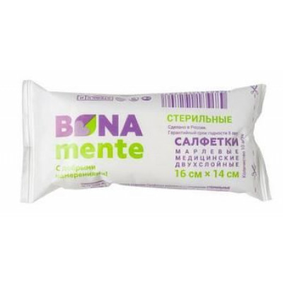 БОНА МЕНТЕ САЛФЕТКИ МАРЛ. 2-Х СЛ. СТЕР. 16Х14СМ. №10 [BONA MENTE]