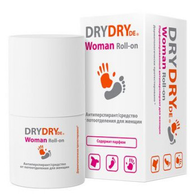 DRYDRYDE Woman Roll-on - парфюмерно-косметический антиперспирант/средство, рекомендованное к использованию при нормальном и обильном потоотделении. Разработано шведскими технологами специально для женщин. Благодаря уникальной формуле DRYDRYDE Woman снижает активность работы потовых желез, предотвращает появление и полностью блокирует на коже развитие микроорганизмов, создавая невидимы барьер от различного рода бактерий. Не оставляет ощущения липкости/не пачкает одежду. Не имеет ограничений по длительности и частоте использования. Не нарушает функцию потовых желез. Не содержит ингредиенты животного происхождения.