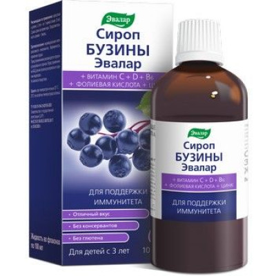 Сироп с соком и экстрактом плодов бузины черной для повышения защитных сил организма и поддержания активности иммунной системы.