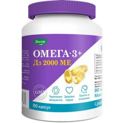 Комплекс омега-3 + Д3 способствует: укреплению иммунитета, повышению устойчивости организма к вирусным инфекциям; снижению риска тромбообразования и поддержанию уровня холестерина в норме; улучшению когнитивных функций (поддержанию здоровья мозга, улучшению памяти и внимания).